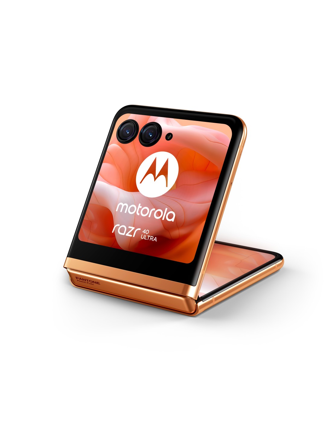 Motorola razr 40 Ultra. Dimensioni diagonale schermo: 17,5 cm (6.9"), Risoluzione del display: 2640 x 1080 Pixel. Famiglia processore: Qualcomm Snapdragon, Modello del processore: 8+ Gen 1. Capacità della RAM: 8 GB, Tipo di RAM: LPDDR5, Capacità memoria interna: 256 GB. Risoluzione fotocamera posteriore (numerico): 12 MP, Tipo di fotocamera posteriore: Doppia fotocamera. Capacità della scheda SIM: Doppia SIM. Sistema operativo incluso: Android 13. Capacità della batteria: 3800 mAh. Colore del prodotto: Pesca. Peso: 188,5 g